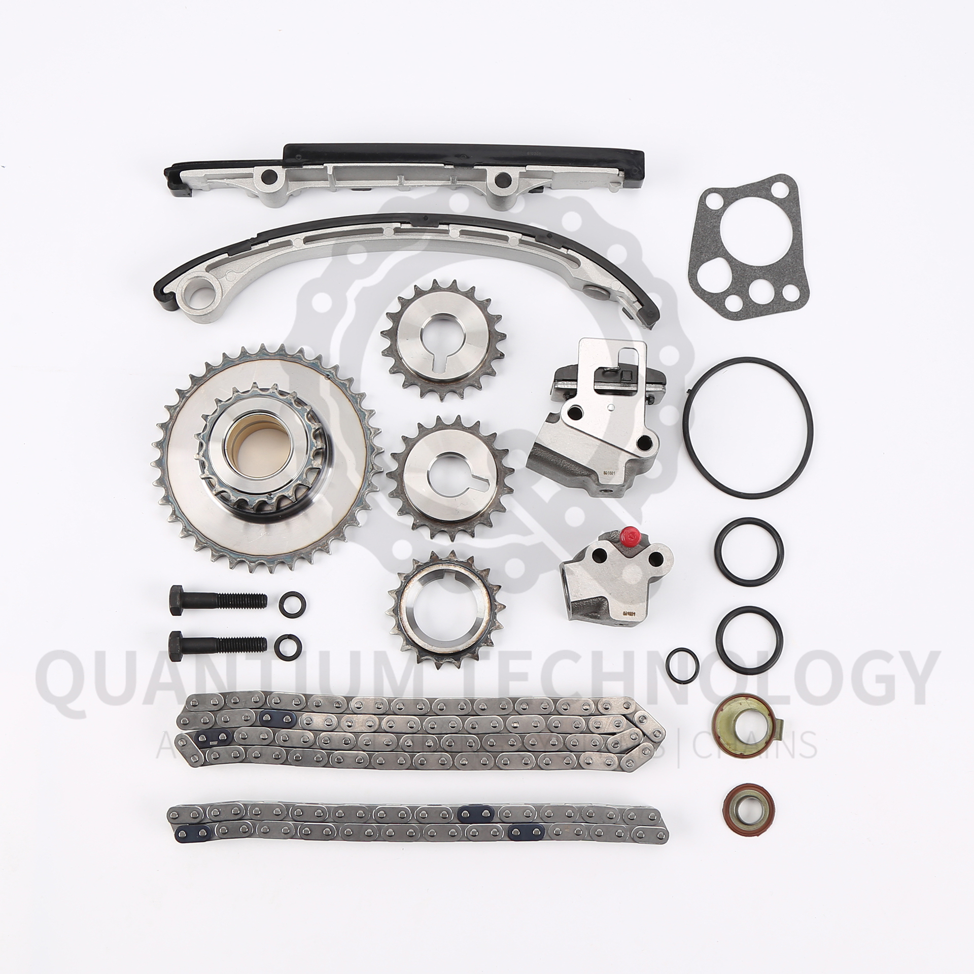 The kit includes a high-grade alloy steel timing chain with heat-treated components for durability and longevity. All parts are manufactured using advanced CNC machining and undergo strict quality control testing. Each component is designed to match OEM specifications, ensuring proper function and extended service life.